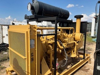 3406 SITA natural gas generator set Serial Number 4FD01154 – unit rated 200 KW prime, 480 volt, 3 phase, 60 HZ, with Caterpillar SR4 generator end and IEA split core radiator, catalytic converter/muffler and air fuel ratio controller. Unit all mounted on common skid