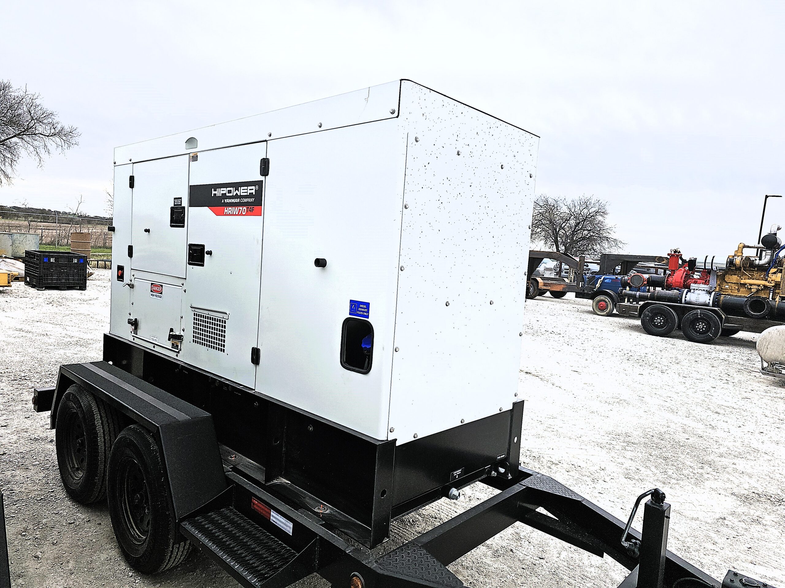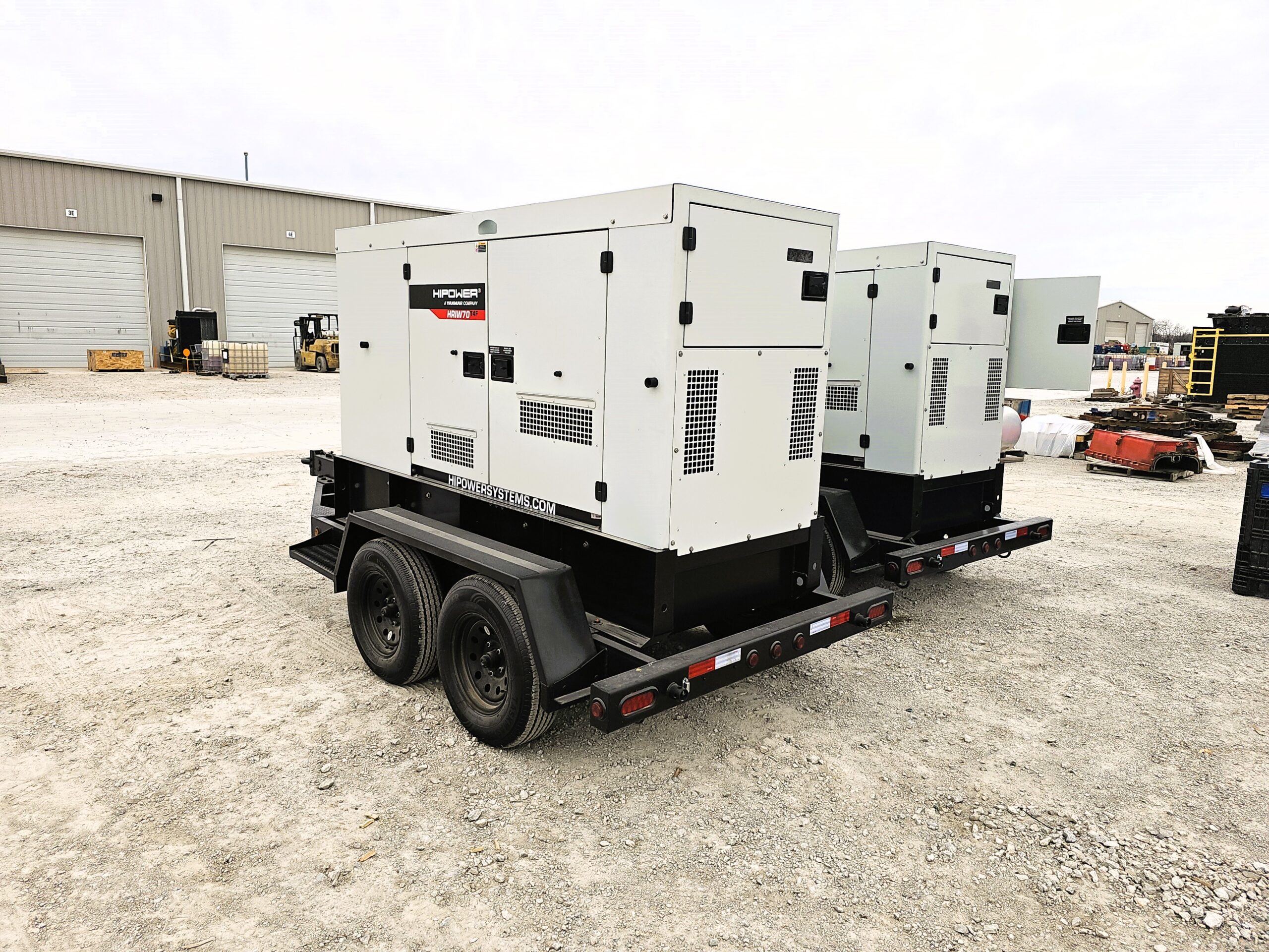 HI POWER PORTABLE HDR-70; 56KW Prime, 62KW Stdby; powered by Isuzu 4JJ1X ; 28hr fuel tank; 3-way valve ; Stamford Brushless PMG Excited, 3 way Selector; Digital Controller for Parallel; Tandem Axle trailer with Surge brakes